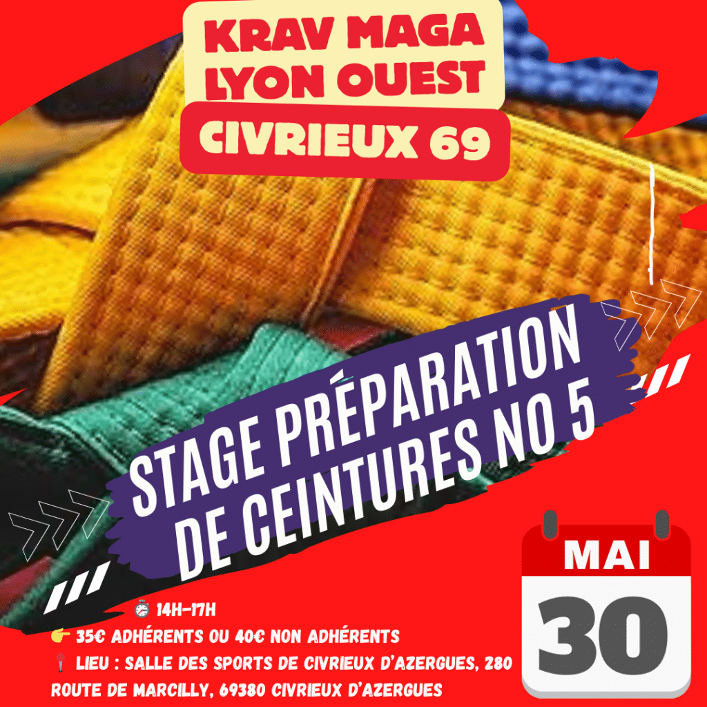 Aura lieu le pot de fin d’année du Club de Krav Maga Lyon Ouest au Dojo du gymnase Daniel Rebillard, rue des sports à Lentilly à 11h.